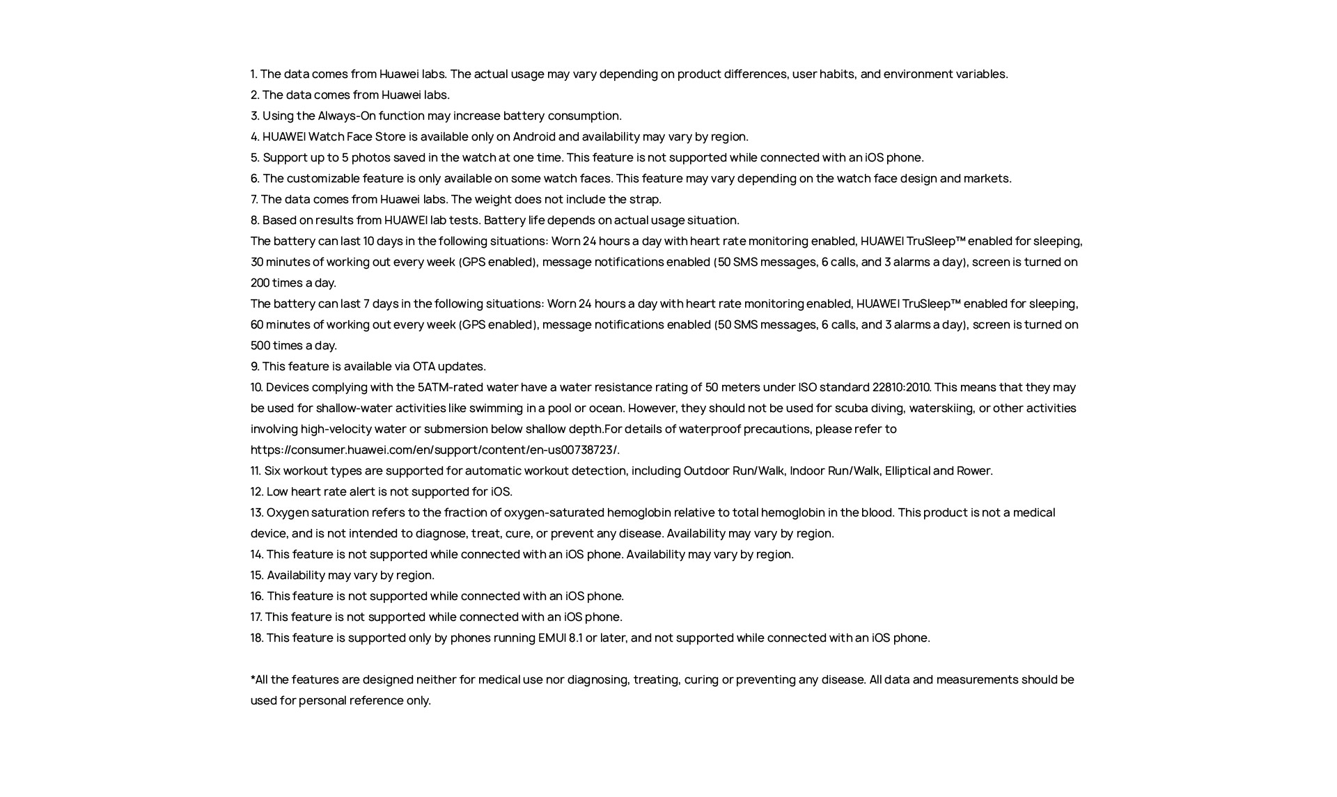 (The typical usage scenarios are decided based on the user habits. The specific battery life depends on the user habits and usage frequency.)
